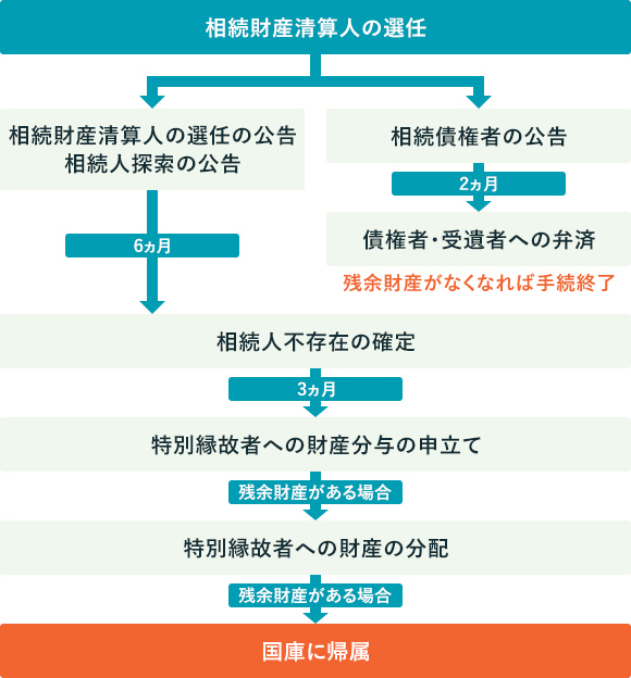 ただし、財産が国庫に帰属するまでの手続は、相続財産清算人(相続財産管理人)によって行われます。